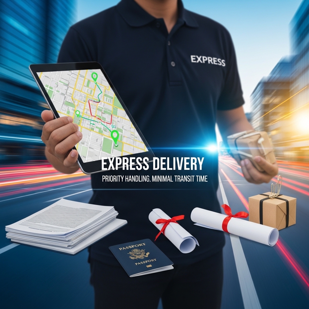 For urgent shipments, our express courier service ensures fast delivery with minimal transit time. This service is perfect for: Urgent documents, Passport delivery, Business contracts, Time-sensitive parcels